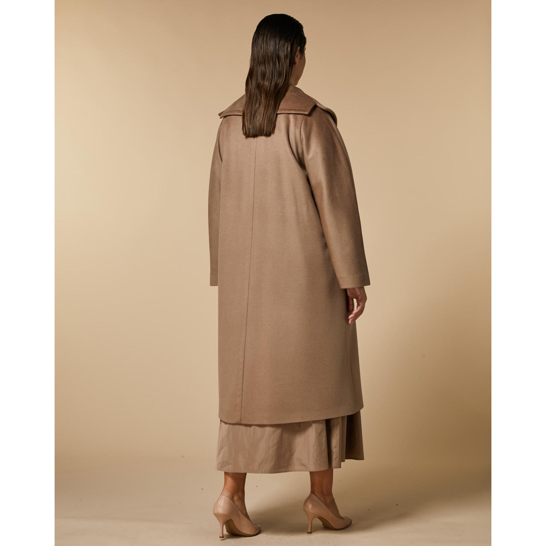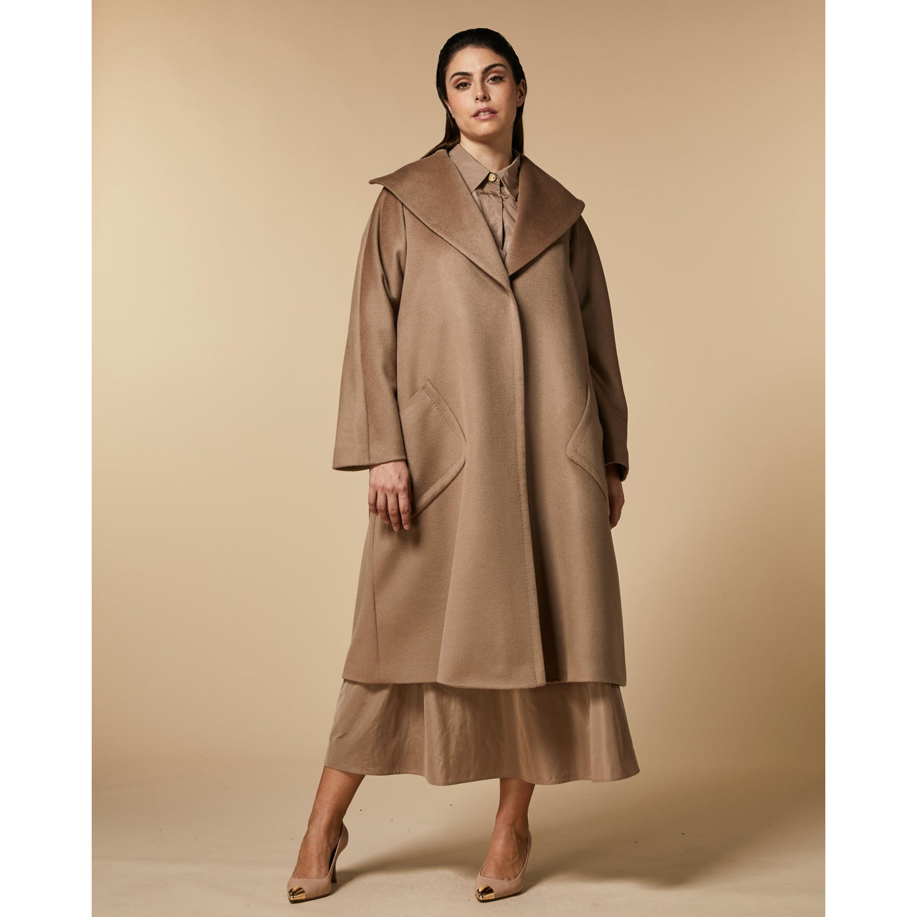 Käsitsi õmmeldud mantel puhtast villakangast detailidega. Maksimaalne krae, pikad, sügavalt sisseõmmeldud varrukad, kaldus taskud, satiinist vooder ja peidetud kinnitus lakitud trukkidega. Laienevat lõiget saab vööst sobiva vööga reguleerida. Elegantne ja sobib ideaalselt nii erilisteks sündmusteks kui ka igapäevaseks stiiliks.