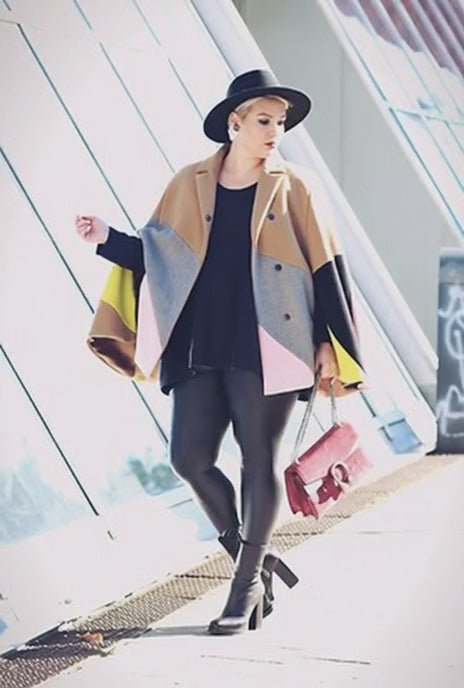 The ONTARIO poncho from Persona by Marina Rinaldi combines the warmth of pure wool with a bold, modern design. Its beige base is enhanced by striking intarsia in pink, grey, black, and lime, making this piece both elegant and eye-catching. Fashionable sleeve slits add comfort and versatility, allowing the poncho to be styled with a belt for a different silhouette. Warm, comfortable, and chic — the perfect statement outerwear for the autumn-winter season.